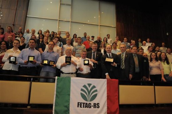 O presidente da Fetag e os presidentes do Sindicatos dos Trabalhadores Rurais de Porto Alegre, Taquari, Santa Maria, Caxias do Sul, Veranópolis, Antônio Prado, Torres e Farroupilha receberam medalhas e uma placa em homenagem aos 50 anos da entidade.