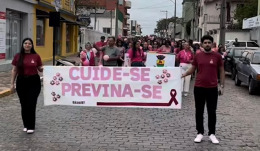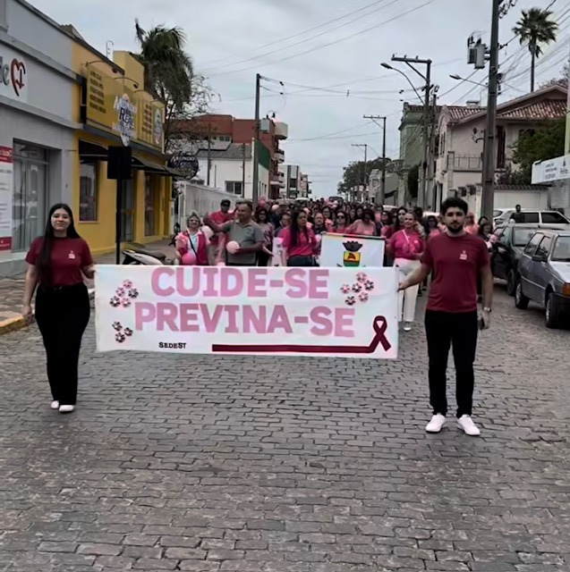 Com o lema “O primeiro passo é a prevenção e o autocuidado”, o grupo saiu do CTG Sentinela dos Cerros e seguiu até o Largo Farroupilha, em uma caminhada marcada pela cor rosa, pela solidariedade e pela mensagem de valorização da vida.