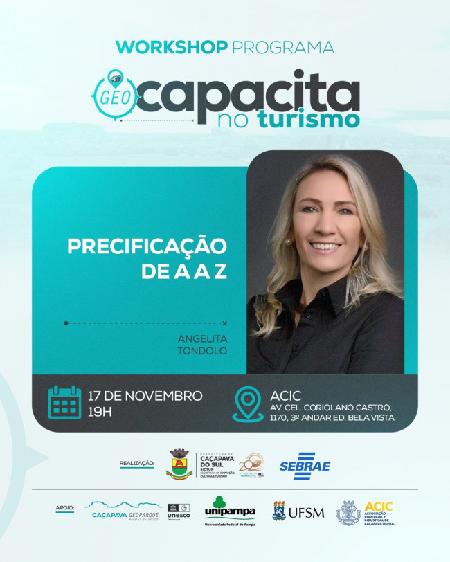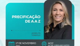 No dia 17 de novembro, às 19h, na ACIC, ocorre o workshop “Precificação de A a Z”, com Angelita Tondolo. A atividade abordará as características da precificação, fatores que influenciam na formação de preços, critérios de rateio e estratégias para melhorar resultados e margens de lucro.