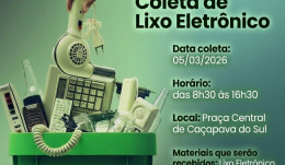 O vereador Paulo Pereira (PDT) informa à comunidade que se aproxima o Mutirão de Recolhimento de Lixo Eletrônico e Embalagens de Vidro Não Retornáveis, que será realizado no dia 5 de março, na Praça Central de Caçapava do Sul, das 8h30 às 16h30, em parceria com a empresa Maringá Metais, de Santa Maria.