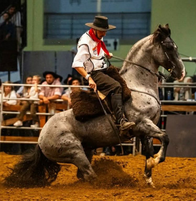 Natural de Caçapava do Sul, Lucas há anos se destaca no cenário do Cavalo Crioulo, especialmente em provas disputadas fora do país.
