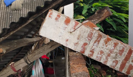 As madeiras e o telhado estavam pressionando a casa ao lado, onde reside uma família com crianças.