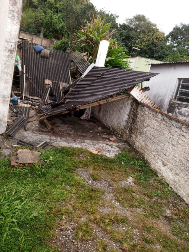 Após o vento forte e as chuvas do início da semana, uma garagem acabou desabando en una residência, no bairro Santa Rita, deixando os escombros escorados na residência ao lado. A família em vulnerabilidade social acionou a Defesa Civil, que com ação rápida dos profissionais da secretaria de desenvolvimento social fizeram a limpeza total e desobstruíram os escombros.
