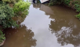De acordo com as informações preliminares, o motorista de uma carreta teria perdido o controle do veículo, saindo da pista e caindo no arroio. O condutor ficou ferido e recebeu atendimento no local.