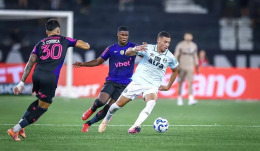 O Glorioso seguiu atacando e, aos 24 minutos, o centroavante Arthur Cabral cabeceou para fora depois de cruzamento do Artur.