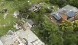 As imagens aéreas do desastre na comunidade de Vila Rica, na zona rural de Farroupilha, mostram que o padrão de danos indica que os destroços foram jogados em diferentes direções, o que caracteriza o fenômeno denominado tornado.