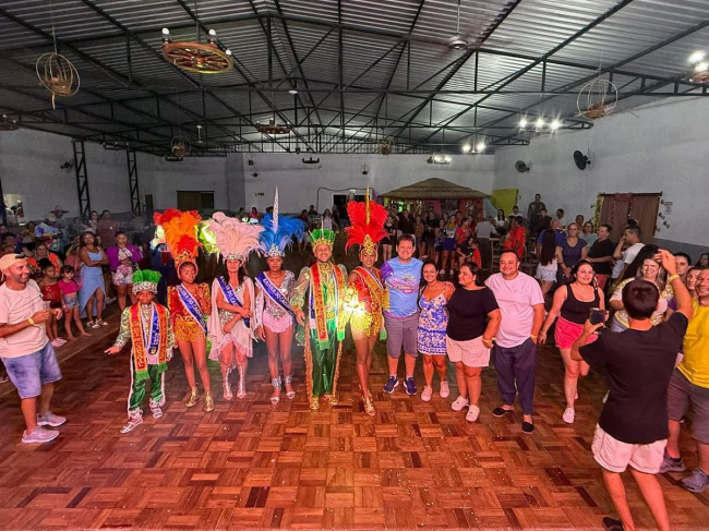 Após a participação no Carnaval de Santana da Boa Vista, a comitiva carnavalesca de Caçapava do Sul seguiu agenda e marcou presença na primeira noite do tradicional Carnaval do Guarda Velha. A Corte foi recebida com muita festa e carinho pelos foliões e pelo vice-prefeito Mariano Teixeira.