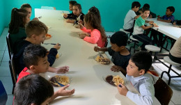 Já no período da tarde, o lanche segue o cardápio estabelecido pelas nutricionistas.