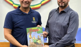 Na segunda-feira (07), o vereador Peter Linhares (PDT) recebeu em seu gabinete o gerente do Banrisul, Eduardo Barin, para tratar da realização da 2ª etapa do Campeonato Gaúcho de Truco Cego.