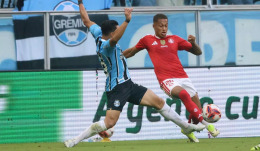 O Grêmio teve um contra-ataque ‘mortal’ com Amuzu, que carregou a bola e passou por Bernabei. O lateral-esquerdo derrubou o atacante e, direto, levou cartão vermelho: Inter com um a menos.