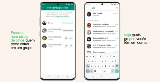 Os administradores terão mais controle sobre a privacidade dos grupos, definindo quem pode entrar ou não, a partir de agora. O objetivo é trazer mais ferramentas para administradores conseguirem monitorar as conversas, bem como acompanhar o ingresso de membros.